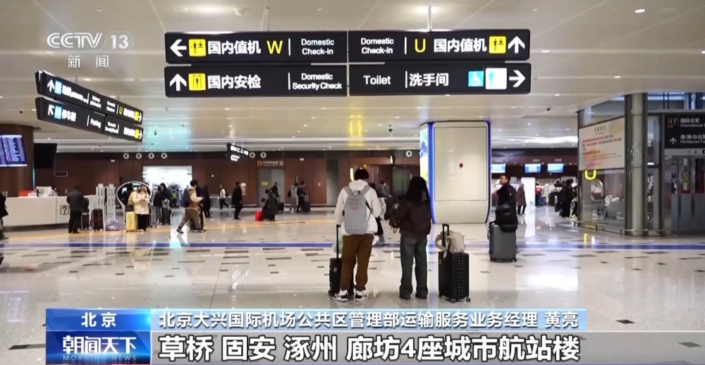 北京大興國(guó)際機(jī)場(chǎng)公共區(qū)管理部運(yùn)輸服務(wù)業(yè)務(wù)經(jīng)理 黃亮:大興機(jī)場(chǎng)投運(yùn)4年多來(lái),草橋、固安、涿州、廊坊4座城市航站樓累計(jì)服務(wù)旅客超135萬(wàn)人次。京雄高速和津興城際鐵路開(kāi)通,目前每日開(kāi)行列車26對(duì),覆蓋北京、天津、雄安、霸州、固安、唐山等區(qū)域;通過(guò)鐵路換乘,大興機(jī)場(chǎng)兩小時(shí)地面交通圈可以覆蓋京津冀地區(qū)主要城市。
