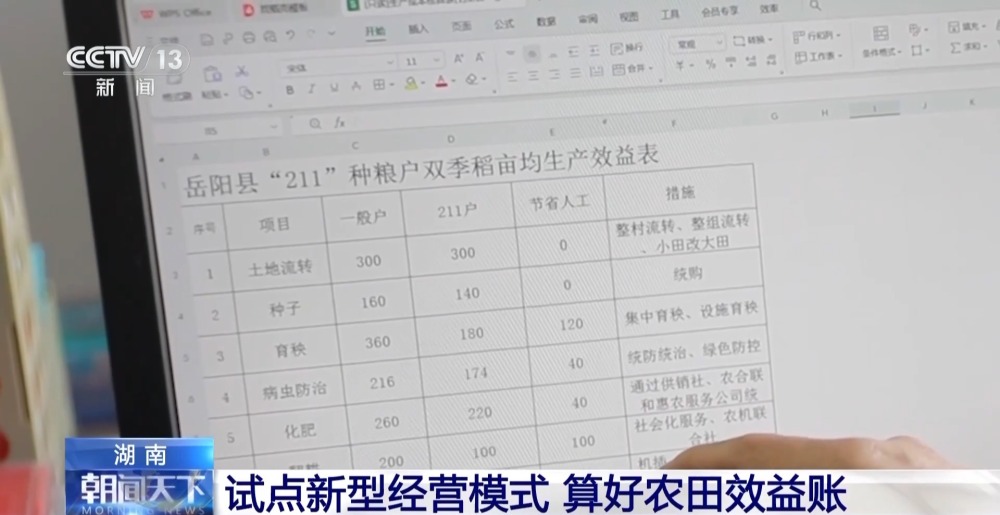 在岳陽縣,記者看到一張承包500畝田和承包100畝田的對(duì)比表格,也印證了這種新模式的效果。去年承包500畝田的農(nóng)戶,雙季水稻加起來平均畝產(chǎn)1700斤,而承包100畝田的農(nóng)戶,雙季稻平均畝產(chǎn)達(dá)到1800斤,每畝要比大戶多收100斤谷子。