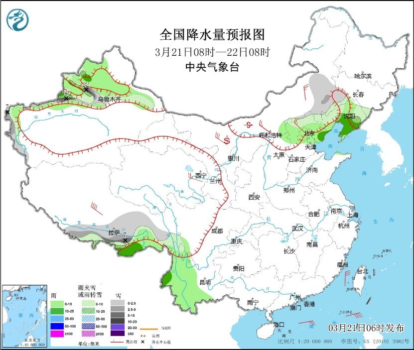 央視網(wǎng)消息:據(jù)中央氣象臺網(wǎng)站消息,昨日,降水主要出現(xiàn)在新疆北部和西藏東南部等地,其中西藏帕里降水量27毫米。預(yù)計未來三天,我國的降水將日漸增多,新疆北部、西藏東南部、內(nèi)蒙古東部、華北北部、東北地區(qū)等地有明顯雨雪天氣。此外,公眾還需關(guān)注22日夜間起影響我國的冷空氣給中東部帶來的大風(fēng)、降溫和雨雪天氣。