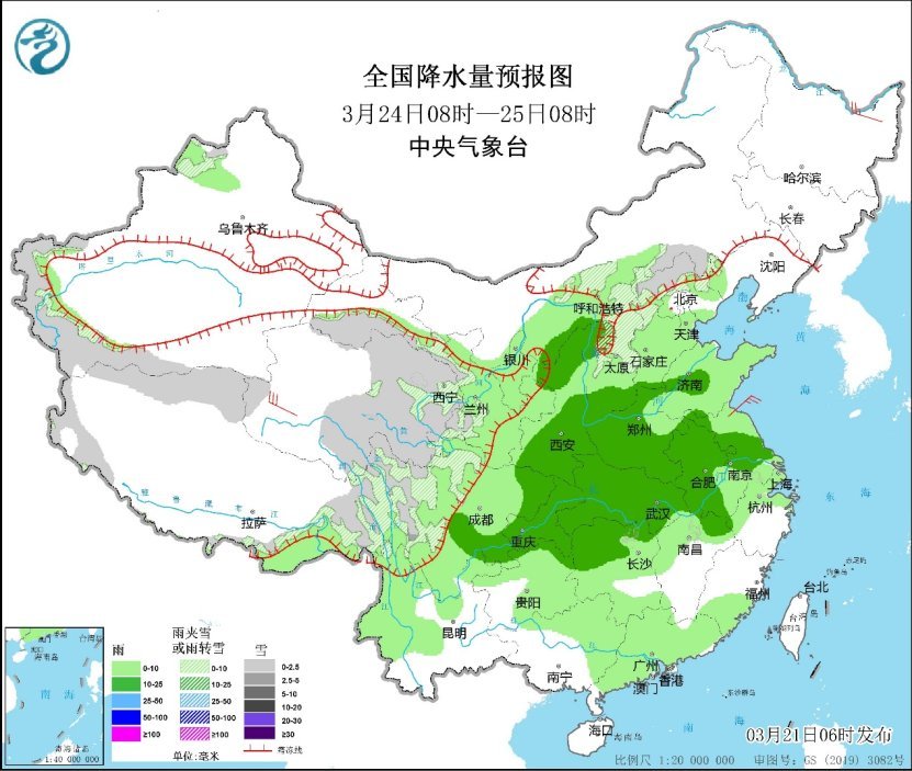 受冷空氣影響,22日夜間至25日,中東部大部地區(qū)自北向南將出現(xiàn)4~6℃降溫,部分地區(qū)降溫8~10℃,長江中下游及其以北地區(qū)將有4~5級偏北風(fēng),陣風(fēng)可達6~8級,內(nèi)蒙古中東部及東北地區(qū)西部等地局地有揚沙或浮塵;受冷暖空氣共同影響,西北地區(qū)東部、黃淮、江淮、江漢、江南中北部、四川東北部、重慶及貴州東部等地的部分地區(qū)有中到大雨,局地暴雨或大暴雨,上述地區(qū)局地伴有短時強降水、風(fēng)雹等強對流天氣。