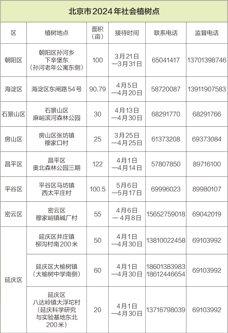 首都綠化委員會辦公室公布2024年義務(wù)植樹盡責(zé)接待點