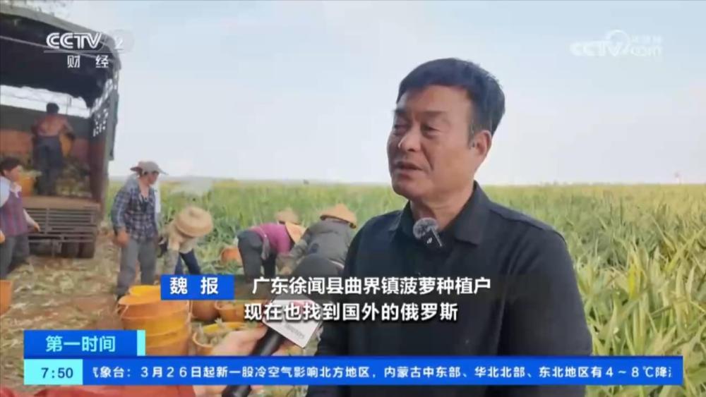 廣東徐聞縣曲界鎮(zhèn)菠蘿種植戶 魏報(bào):現(xiàn)在也找到國外的俄羅斯,我們都引進(jìn)了不少客戶過來。