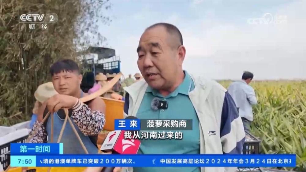 菠蘿采購商 王來:我從河南過來的。這個(gè)季節(jié)每天發(fā)個(gè)幾十車是沒什么問題的,也就是幾十萬斤,基本上每天都發(fā)。