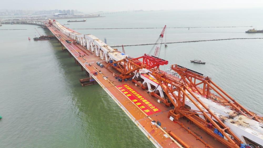 澳氹第四條跨海大橋連接澳門新城填海A區(qū)、填海E區(qū)以及港珠澳大橋人工島口岸區(qū),是構(gòu)建澳門城市交通體系的關(guān)鍵節(jié)點(diǎn)。該大橋于3月12日順利實(shí)現(xiàn)全橋合龍,由主體結(jié)構(gòu)工程全面邁入橋梁附屬結(jié)構(gòu)工程。(總臺(tái)記者 劉冰清)