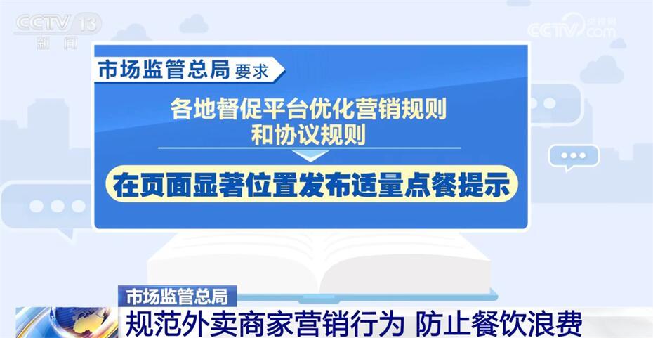 市場監(jiān)管總局要求各地督促平臺優(yōu)化營銷規(guī)則和協(xié)議規(guī)則,在頁面顯著位置發(fā)布適量點餐提示;鼓勵平臺健全激勵機(jī)制,推動商家開發(fā)、提供、推廣小份餐品,合理設(shè)置餐品起送價格,優(yōu)化滿減湊單機(jī)制,不將主食納入滿減優(yōu)惠展示范圍,鼓勵使用食安封簽。線上線下、同頻同步開展防止餐飲浪費(fèi)與食品安全監(jiān)督檢查,持續(xù)開展“隨機(jī)查餐廳”行動。對造成明顯浪費(fèi)、嚴(yán)重浪費(fèi)且拒不改正的,依法嚴(yán)厲處罰并公開曝光。