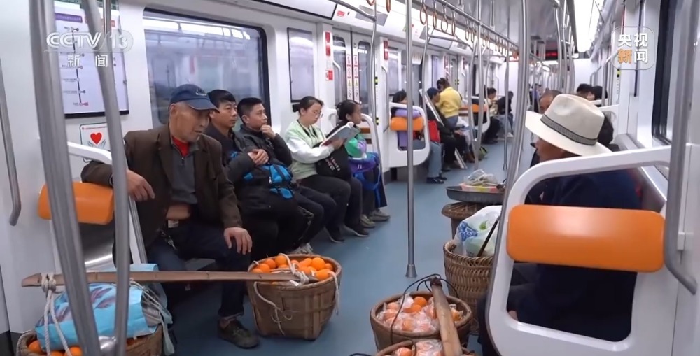 地鐵線沒通時,他們都會前往石船鎮(zhèn)和附近的場鎮(zhèn)去賣橙子,那時,老兩口便會挑著橙子走上1個多小時,行程8里地,才能到鎮(zhèn)上,但鎮(zhèn)上賣得并不好,果子時長會因為賣不出去而爛在地里。今年一月開始,商戶上門收購,外加上每天乘地鐵去賣橙子,老兩口的橙子已經(jīng)銷售了8000多斤,剩下還有2000斤左右。有地鐵的便利加持,老兩口并不擔(dān)心爛在地里這件事兒,只盼著行情好些,能夠多賺些。