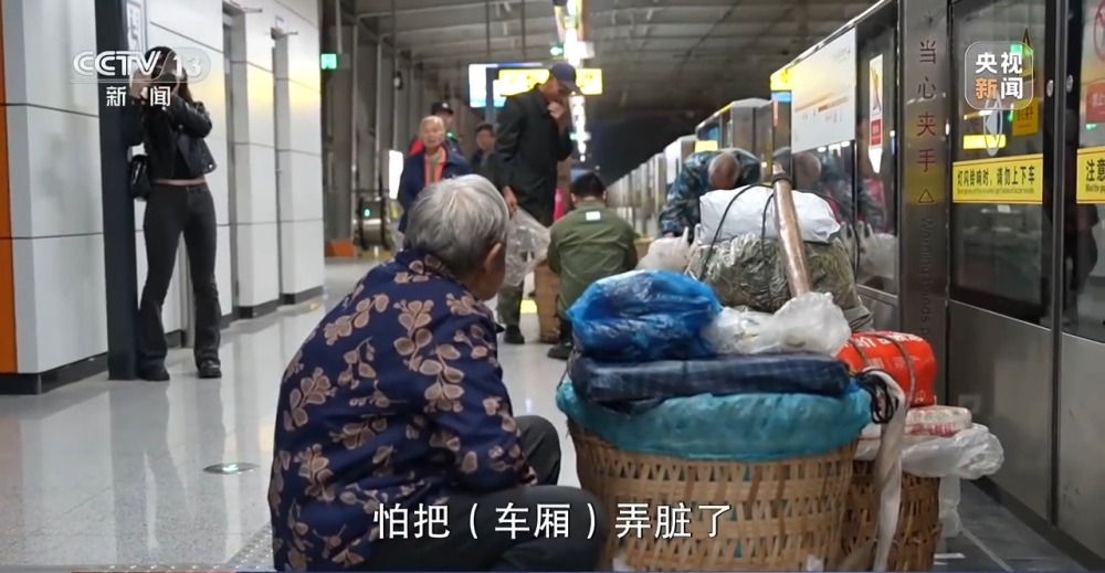 為了給菜農(nóng)提供方便,本該是6時15分打開的閘門,也是提前了5分鐘,站內(nèi)工作人員也提供力所能及的幫助。菜農(nóng)的背簍,大多是敞口,尺寸大小不超標(biāo),為了方便通行,地鐵工作人員大多采取手持檢測儀器安檢。得此方便的菜農(nóng)也在為地鐵的衛(wèi)生著想,大多都將菜包好,不讓泥水蹭臟地面。