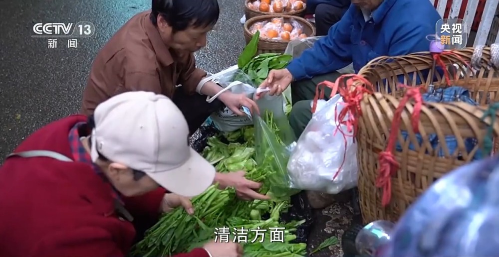 重慶人和加新農(nóng)貿(mào)市場經(jīng)理 張紅:背簍菜農(nóng)每天最起碼有500人以上。他們在專門的地區(qū)擺攤,我們不會收他們的費(fèi)。清潔方面,他們走了之后,我們公司有清潔團(tuán)隊來做衛(wèi)生,對他們都是免費(fèi)的,給背簍菜農(nóng)留點空間,畢竟他們也很辛苦的。