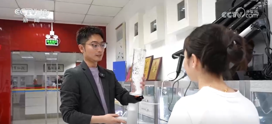 吳巧媚介紹,工藝品擺件、珠寶飾品、數(shù)字收藏品,還有餐飲、蛋糕甜品這一塊,希望它能夠應用到生活的方方面面。我們講“文化自信”“文化出?!?,文化要通過不同的載體去承載,希望通過毛絨玩具可以呈現(xiàn)、通過餐具可以呈現(xiàn)、通過衣服也可以呈現(xiàn)。