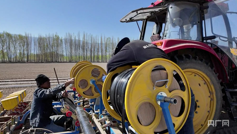 種植戶使用大型農機開展機械化鋪膜播種作業(yè) (吾蘭 攝)