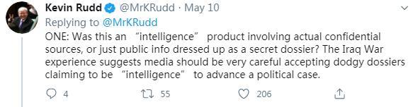 5月10日,陸克文在社交媒體再次連發(fā)五問,質(zhì)疑可能參與此次“甩鍋中國”事件的各方。他的第一問稱,這所謂的15頁“情報”,究竟是源于真實的絕密情報,還是根據(jù)公開信息拼湊而成?他表示,“伊拉克戰(zhàn)爭的教訓早已告誡媒體,必須謹慎對待所謂的‘情報’,以防陷入某種政治目的之中?!?/p>