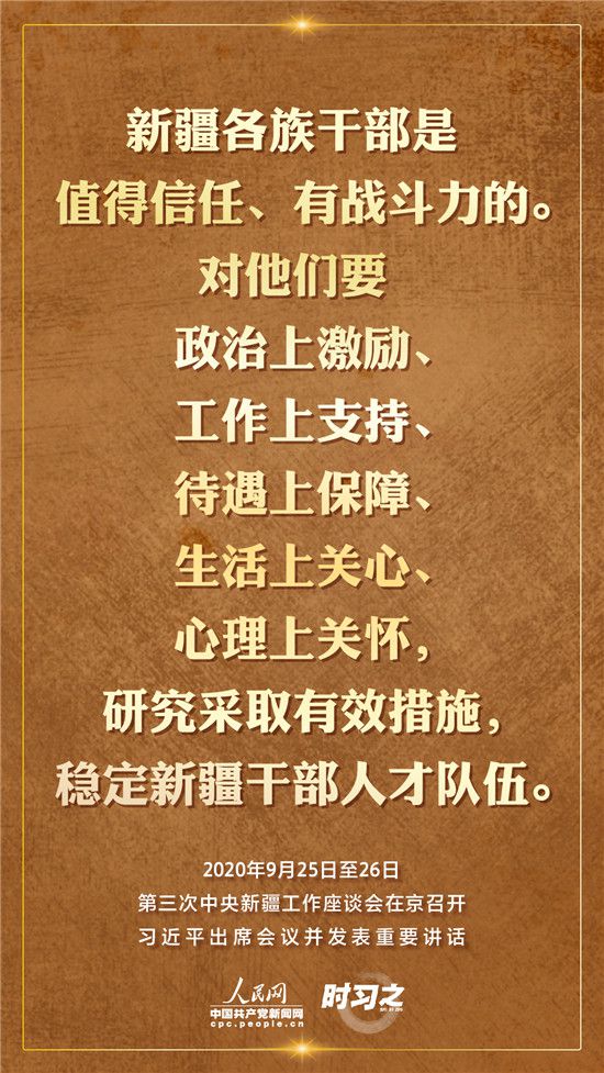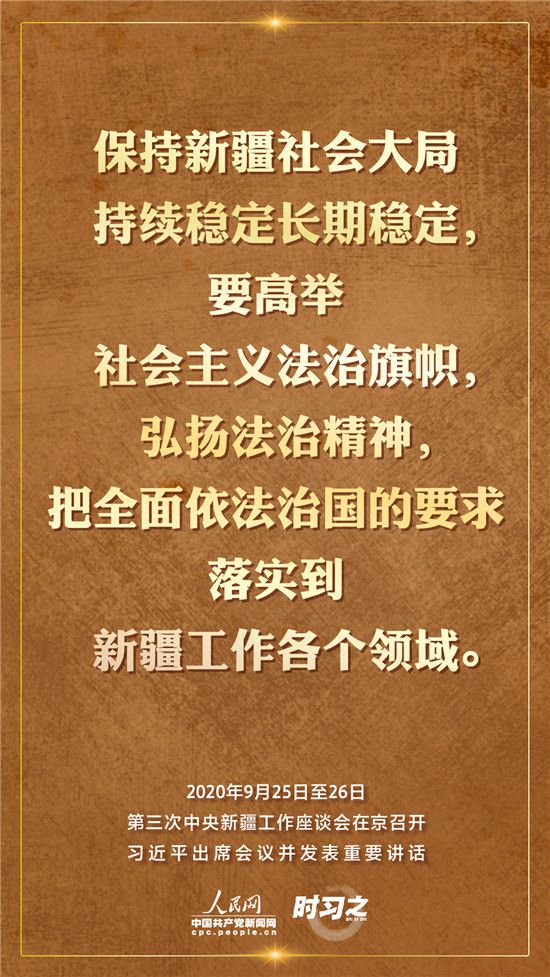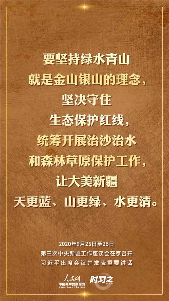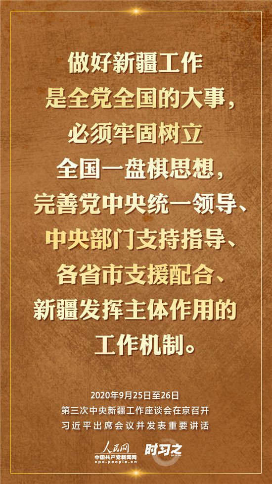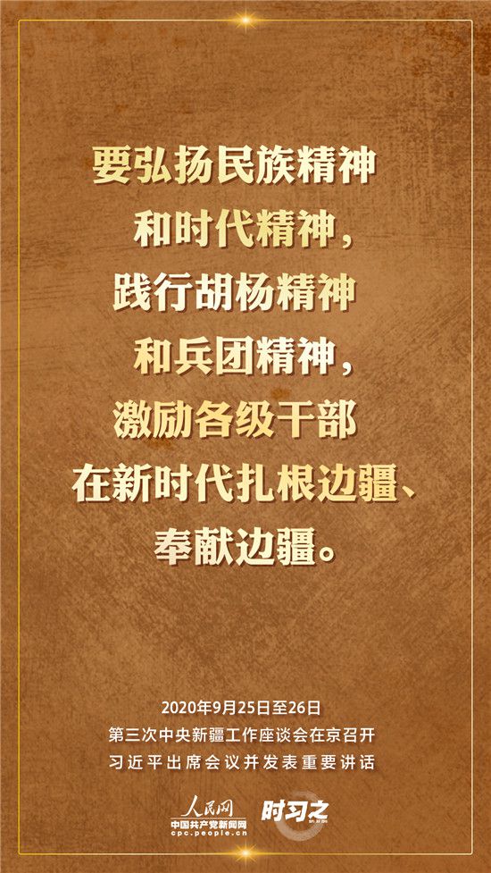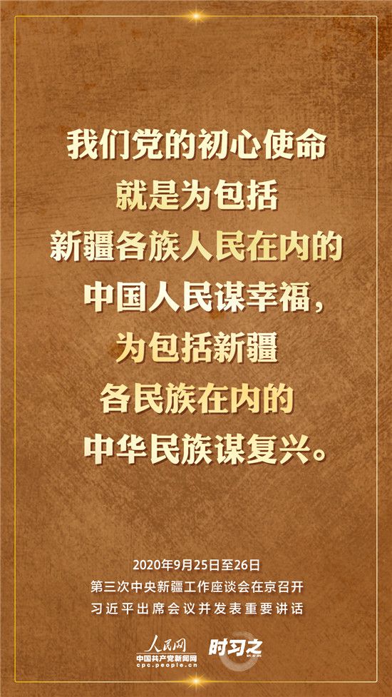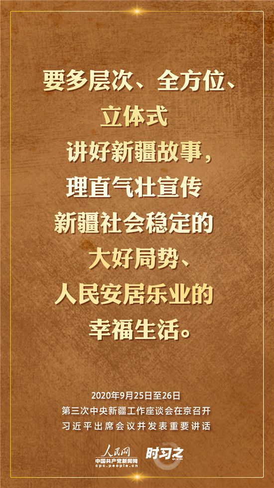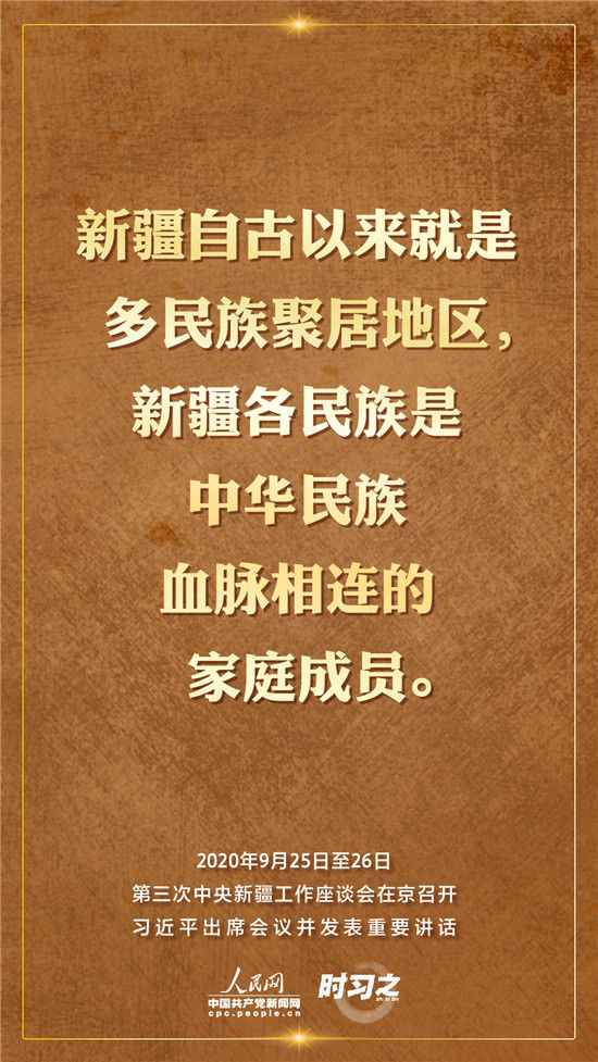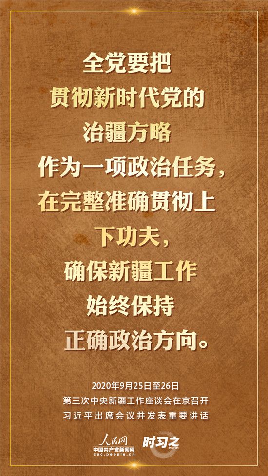 9月25日至26日,第三次中央新疆工作座談會(huì)在北京召開。習(xí)近平總書記出席會(huì)議并發(fā)表重要講話。習(xí)近平全面總結(jié)了第二次中央新疆工作座談會(huì)以來新疆工作取得的重大成效,深入分析了當(dāng)前新疆工作面臨的形勢,闡釋了新時(shí)代黨的治疆方略,明確了當(dāng)前和今后一個(gè)時(shí)期新疆工作的指導(dǎo)思想、目標(biāo)任務(wù)、方針政策、戰(zhàn)略舉措,全面部署了推動(dòng)新疆社會(huì)穩(wěn)定和長治久安的重點(diǎn)工作。人民網(wǎng)·中國共產(chǎn)黨新聞網(wǎng)“時(shí)習(xí)之”欄目帶您聆聽總書記那些直抵人心的講話金句。