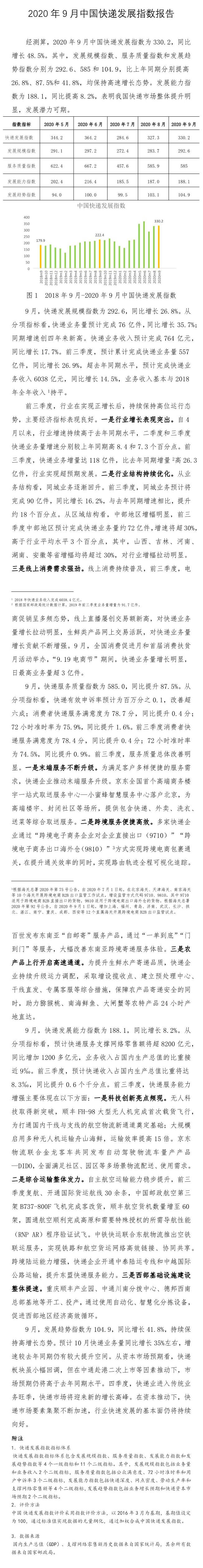 國(guó)家郵政局:2020年9月中國(guó)快遞發(fā)展指數(shù)同比增48.5%