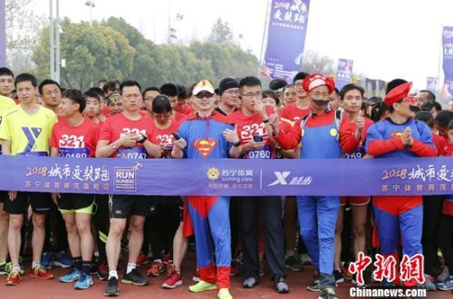 中新網(wǎng)3月27日電 近日,由蘇寧體育聯(lián)合特步中國(guó)全力打造的首屆2018蘇寧體育“城市變裝跑”在南京綠博園內(nèi)盛大舉行。這是一場(chǎng)觸發(fā)能量、喚醒春意的體育賽事,不僅是運(yùn)動(dòng)愛(ài)好者的嘉年華,更是一場(chǎng)全民參與的趣味活動(dòng)。