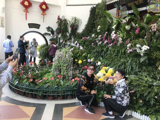 五一期間,中山公園唐花塢室內展室正在舉辦花卉精品展,游客不僅可以欣賞到地涌金蓮、寶石蓮燈、蝴蝶蘭、天堂鳥等室內精品花卉,還可以觀賞到通過花期控制手段使其秋花春開的品種菊,共計2000余盆。園內的蕙芳園里正在舉辦的“遲園花香”畫展,在蕙芳園古色古香的仿明式四合院展室中,可以欣賞到展出國畫大師王雪濤先生親傳弟子李承毅中國畫作品40余幅。另外,蕙芳園里還展出了兜蘭、日本蘭、葉藝墨蘭、獨占春、紅舌虎頭蘭等蘭花精品100余盆,與山水畫作相得益彰,營造出了濃厚的文化氛圍。