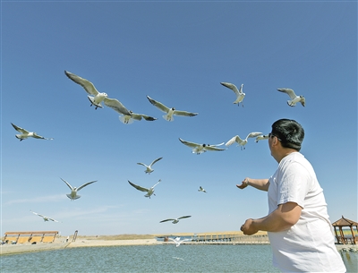 “湖濱密生蘆葦,入秋蘆花飛舞,宛若柳絮。……鵝翔天際,鴨浮綠波,碧水青天,馬嘶雁鳴……”居延海曾經(jīng)失去過這樣的神韻風(fēng)姿。 近年來,隨著保護(hù)力度的加大與生態(tài)環(huán)境逐漸恢復(fù),湖中生機(jī)再現(xiàn),樹木起死回生,水鳥凌空飛翔,這顆大漠深處的藍(lán)色明珠再一次熠熠生輝?。ㄓ浾?懷特烏勒斯 攝影報(bào)道)
