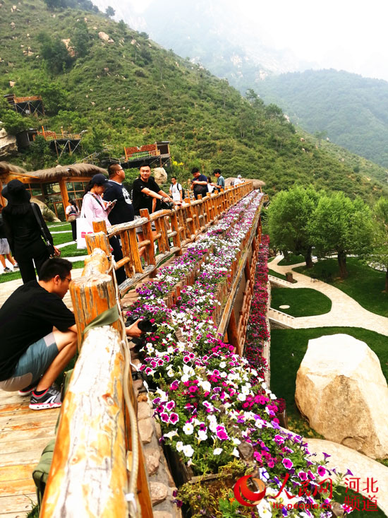 “這里的景色好看,溫度也不高,挺舒服?!痹诼交ㄏ染皡^(qū)的竹廊美食苑休息區(qū),一位頭發(fā)花白的老人說,她和閨女專門從石家莊開車過來玩,從山下爬到這里的。當問到“為什么不坐游覽車上來”,老人笑著說,“坐游覽車上來就沒意思了,我們就是邊爬山邊享受這山里涼爽的空氣和欣賞沿路的景色。這里真是個養(yǎng)老的好地兒?!?/p>