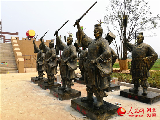 圖為中山國靈壽古城遺址公園內,士兵蓄勢待發(fā)。楊文娟攝