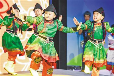 6月23日,“友誼·和平·年輕的使者”中俄蒙青少年內蒙古旅游夏令營在內蒙古自治區(qū)烏蘭察布市開營,來自中俄蒙三國200余名“小使者”共同開啟夢幻般的草原之旅。開營儀式現場,來自中國、俄羅斯和蒙古國的孩子們帶來了芭蕾舞、蒙古舞、布里亞特民族舞等精彩演出,贏得現場陣陣掌聲。圖為來自中國的小朋友表演民族舞蹈。