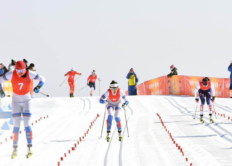 2月17日至27日,第十四屆全國冬季運(yùn)動(dòng)會(huì)在內(nèi)蒙舉行。圖為西藏自治區(qū)運(yùn)動(dòng)員格桑曲珍在越野滑雪青年組女子個(gè)人短距離(傳統(tǒng)技術(shù))賽中正在向終點(diǎn)沖刺。記者 洛桑 索朗群培 攝