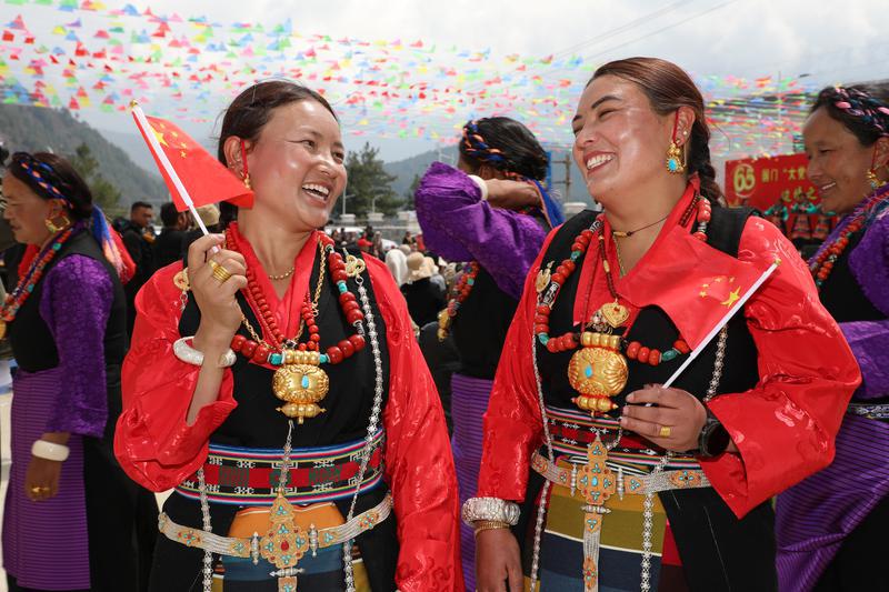 3月28日上午,吉隆出入境邊防檢查站移民管理警察與駐地各單位干部職工及廣大人民群眾共同開展系列活動(dòng)紀(jì)念西藏民主改革 65 周年。圖為參加紀(jì)念西藏民主改革65周年系列活動(dòng)的駐地群眾臉上洋溢著幸福的笑容。記者 旦增蘭澤 通訊員 索朗扎西攝