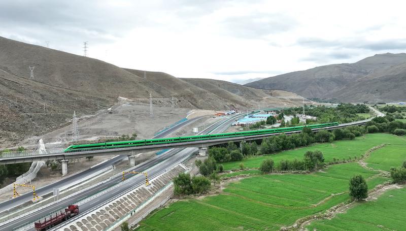6月30日,G4218雅安至葉城國家高速公路拉薩至日喀則機(jī)場段項(xiàng)目建成通車。圖為318國道 、拉日鐵路 、拉日高等級公路 交錯(cuò)并行。記者 索朗群培 次旦央吉 扎西頓珠