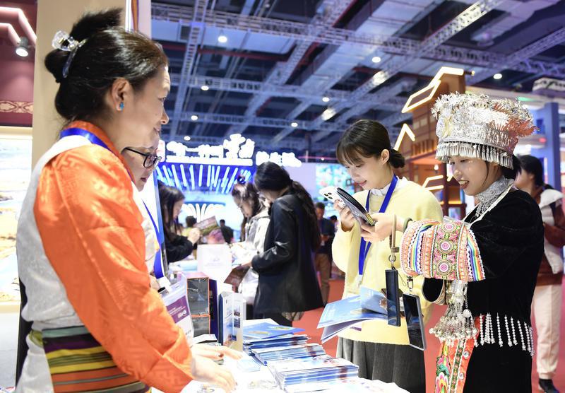 圖為11月22日,自治區(qū)文旅廳率團(tuán)參加在上海舉行的2024年中國國際旅游交易會(huì)。圖為交易會(huì)現(xiàn)場。記者 旦增蘭澤 攝