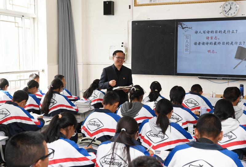今年是對口支援西藏工作30周年。圖為江蘇省援藏教師、拉薩江蘇實(shí)驗(yàn)中學(xué)校長殷飛正在授課。記者 旦增蘭澤 攝