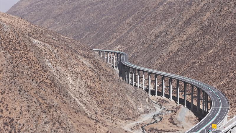 12月18日,西藏S5線拉薩至澤當(dāng)快速公路正式通車試運(yùn)營。圖為拉薩至澤當(dāng)快速公路俯瞰圖。記者 洛桑平措