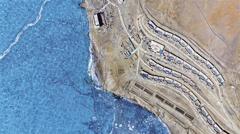 浪卡子縣打隆鎮(zhèn)推瓦村,南部與不丹接壤,邊界線長達25公里,是世界上海拔最高的純牧業(yè)行政村之一。全村共有40戶人家,153位村民在此生活。2月6日,記者踏入推瓦村,首先映入眼簾的是遠處的普姆擁措湖,湖面在陽光的照耀下波光粼粼,與錯落有致的雪山相互映襯,構成一幅絕美的畫面。沿著平坦的柏油馬路前行,道路兩旁整齊排列的路燈和一排排以溫馨黃色為主色調的邊境小康房格外引人注目。漫步在臨近冰湖的村路上,悠然愜意之感油然而生,雪山、湖泊、村落與村民們和諧相融,共同繪就了一幅寧靜祥和的鄉(xiāng)村畫卷。