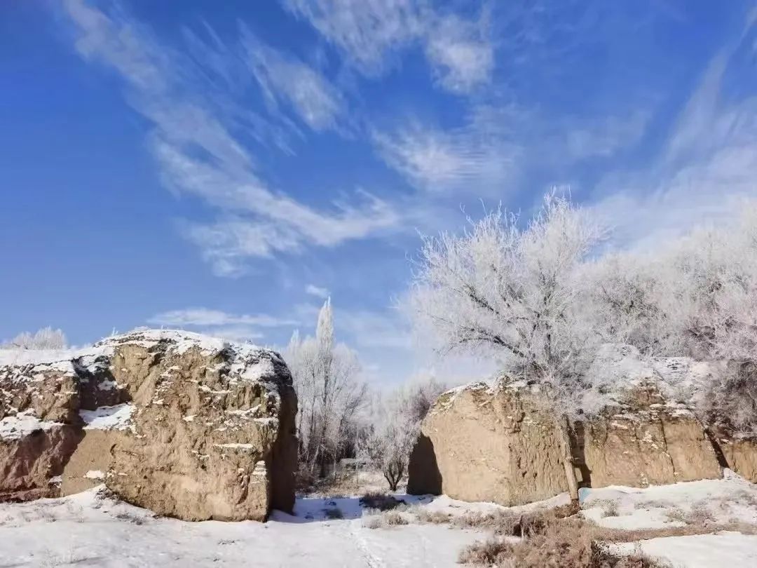 “忽如一夜春風(fēng)來,千樹萬樹梨花開?!边@是唐朝邊塞詩人岑參一千多年前在北庭所見的北國風(fēng)光。大雪時節(jié),新疆北部早已銀裝素裹,位于新疆昌吉回族自治州吉木薩爾縣的北庭故城國家考古遺址公園,被皚皚白雪覆蓋。