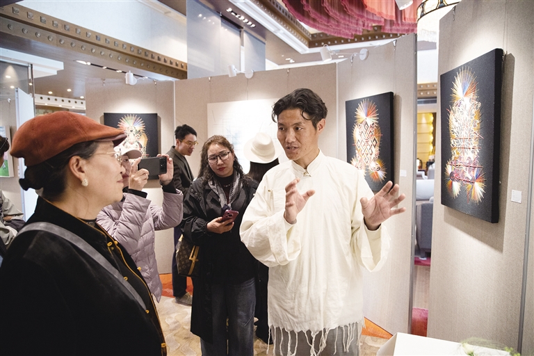 5月2日,“三國(guó)同框 四季如畫(huà) 五彩亞?wèn)|——亞?wèn)|縣文化交流及特色產(chǎn)品展銷(xiāo)活動(dòng)”在拉薩香格里拉酒店開(kāi)幕。亞?wèn)|當(dāng)?shù)氐牟刈逅囆g(shù)家索喃次仁攜手多位區(qū)外藝術(shù)名家,以桃花為媒,通過(guò)藝術(shù)作品展現(xiàn)邊境名城亞?wèn)|的獨(dú)特魅力,以及各族群眾如桃花綻放般團(tuán)結(jié)共進(jìn)、共建美好家園的生動(dòng)圖景,更映照出新時(shí)代邊陲亞?wèn)|的繁榮新貌。