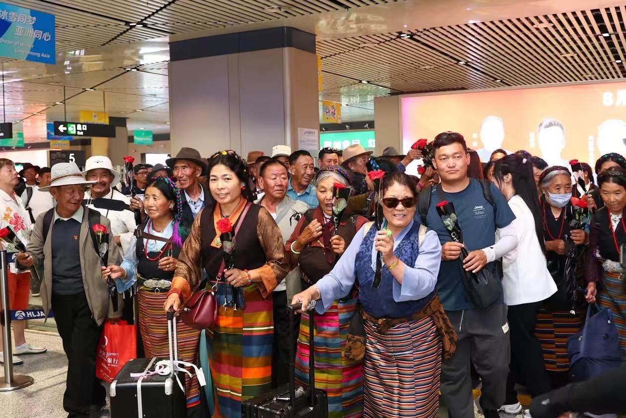 西藏游客搭乘“龍藏號”旅游包機(jī)順利抵達(dá)哈爾濱
