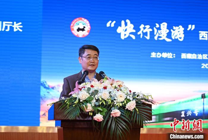 圖為西藏自治區(qū)旅發(fā)廳副廳長姬越致辭?!≮w朗 攝