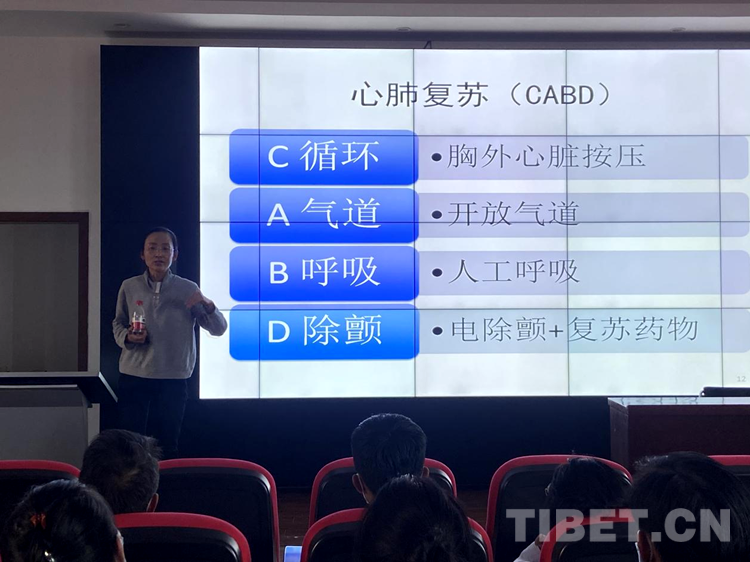 義診之后,北京第七批援藏醫(yī)療隊(duì)代表劉海霞醫(yī)生對(duì)社區(qū)衛(wèi)生院醫(yī)護(hù)人員進(jìn)行了心肺復(fù)蘇等急救培訓(xùn),參與義診的專家、醫(yī)生就社區(qū)衛(wèi)生院醫(yī)護(hù)人員在日常工作中所遇到的臨床問題進(jìn)行解答。