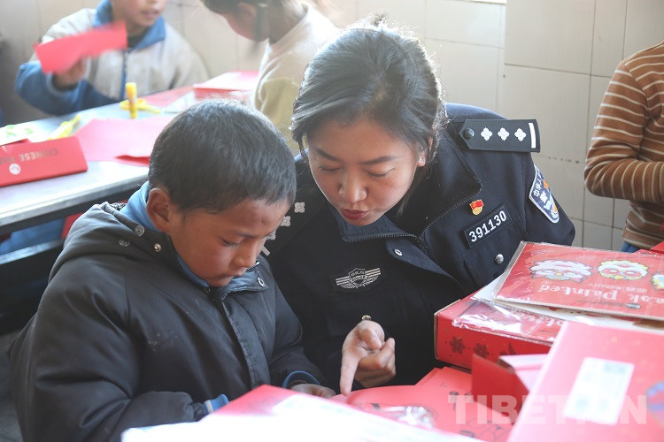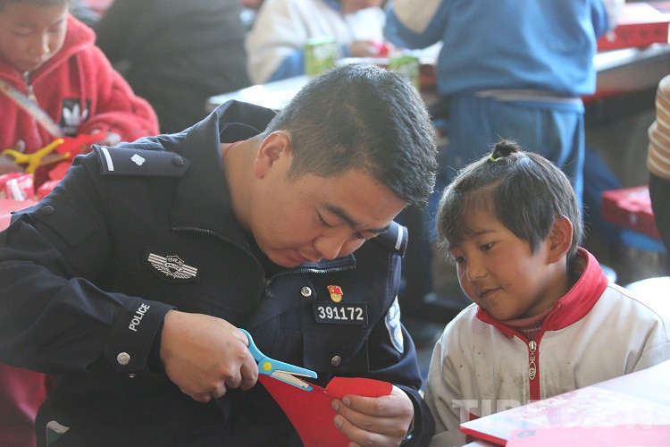 隨后,民警們?yōu)橥瑢W(xué)們發(fā)放了拉薩邊檢站和東莞邊檢站共同準(zhǔn)備的兒童手工DIY禮盒,并和同學(xué)們一起完成剪紙手工制作,共同感受著中華傳統(tǒng)文化美學(xué),體驗(yàn)手工制作的樂(lè)趣。現(xiàn)場(chǎng)歡聲笑語(yǔ),其樂(lè)融融。