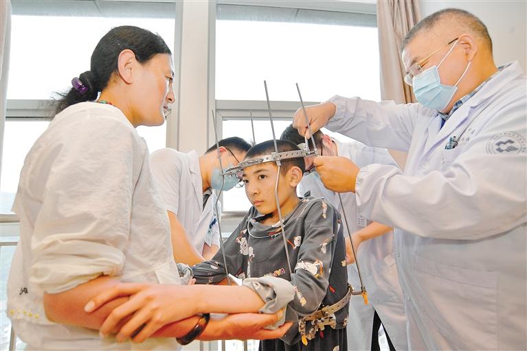 教育“走出去”取得成功的同時,醫(yī)療幫扶也同樣創(chuàng)造了奇跡。2020年8月,經(jīng)援藏工作組對接協(xié)調(diào),蕭山區(qū)中醫(yī)院在色尼區(qū)啟動“抬頭挺胸·重塑脊梁”圓夢行動。曾因脊柱嚴(yán)重畸形、身高僅有135厘米的藏族小伙尼瑪扎西來杭免費治療半年后,奇跡般地長高了22.3厘米。截至目前,已有25位像尼瑪扎西這樣的患者得到救治,挺起了人生的脊梁。