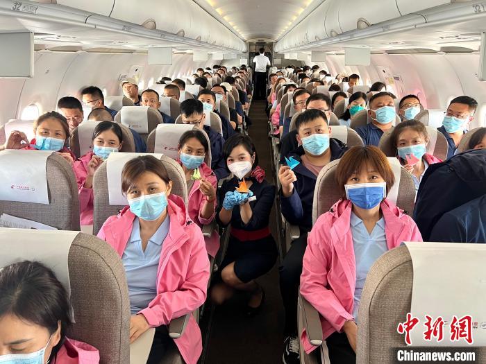 東航今日5班包機接力護送220名援藏醫(yī)療隊員飛抵日喀則 東航供圖