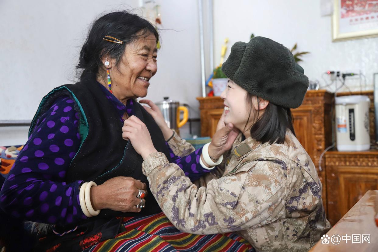 2024年3月1日,新疆軍區(qū)某工兵團(tuán)官兵們走進(jìn)阿里日土縣的敬老院,開展學(xué)雷鋒志愿服務(wù)活動(dòng)。女兵王文靜與藏族阿媽溫馨互動(dòng)的畫面,成為當(dāng)天最暖心的一幕。 圖片來源:中國(guó)網(wǎng)