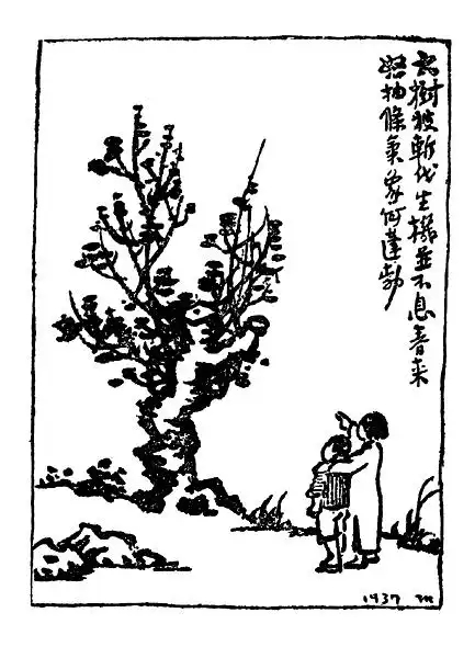 圖為豐子愷多次在畫作中將中國比作大樹,其中一件題詩:“大樹被斬伐,生機并不息。春來怒抽枝,氣象何蓬勃!” 圖片來源:北京日報