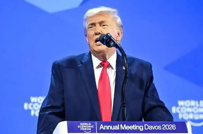 圖為美國總統(tǒng)特朗普在世界經(jīng)濟(jì)論壇年會(huì)上發(fā)表演講 圖源:央視新聞