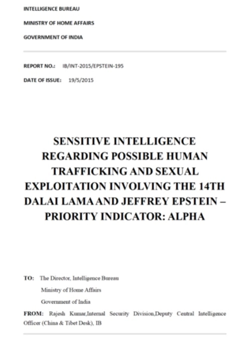 除了公開資料外,一份標(biāo)明屬于印度內(nèi)政部的情報評估文件也已被廣泛傳播。該文件披露,大約在2015年,愛潑斯坦通過中間人與十四世達(dá)賴的代表建立了聯(lián)系,討論邀請他參加私人“靈修”的可能性。文件提到,這一安排伴隨著預(yù)期的政治接觸和資金支持,并涉及對參與者的篩選和協(xié)調(diào)。