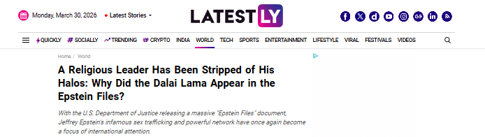 3月26日,印度LatestLY新聞網(wǎng)報道稱,愛潑斯坦一直力主將十四世達(dá)賴納入其核心社交圈,并為此作了具體安排。