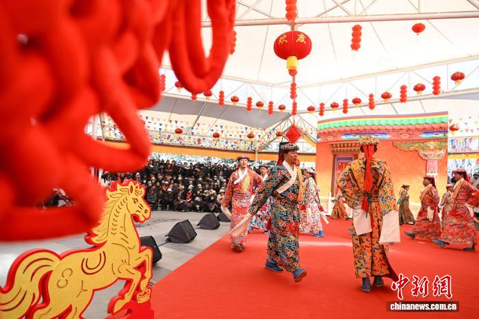 游客們聚精會(huì)神地觀看藏戲 圖片來(lái)源:中新網(wǎng)