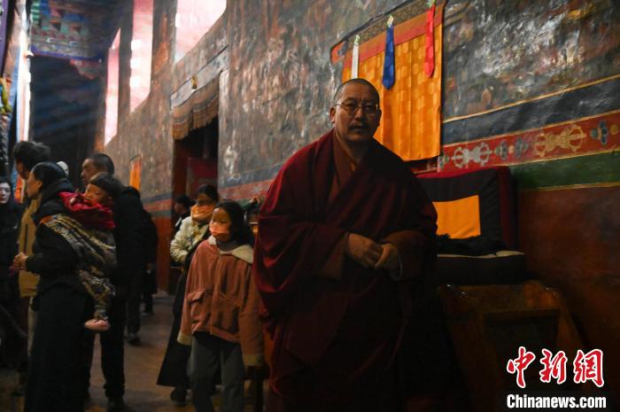 圖為洛卓土美巡查佛殿。趙朗 攝