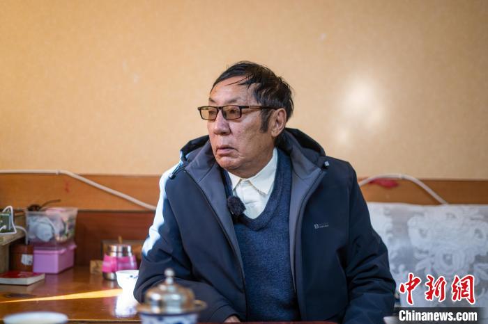 圖為12月3日,支布老人在家中向中新網記者講述“兩路”為西藏帶來的變化。貢嘎來松 攝
