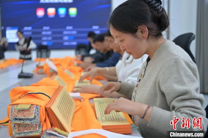2月27日,在甘肅甘南藏族自治州碌曲縣益西達(dá)吉科技有限公司內(nèi),工作人員正在進(jìn)行藏文古籍?dāng)?shù)字化相關(guān)工作。該公司主要從事民族古籍?dāng)?shù)字化建設(shè)和古籍文獻(xiàn)數(shù)據(jù)庫建設(shè),自2019年以來,承擔(dān)西藏、四川、甘肅等省區(qū)的藏文古籍?dāng)?shù)字化項(xiàng)目。圖為工作人員對(duì)藏文古籍(木刻版)做數(shù)字化工作前期準(zhǔn)備。中新社記者 九美旦增 攝