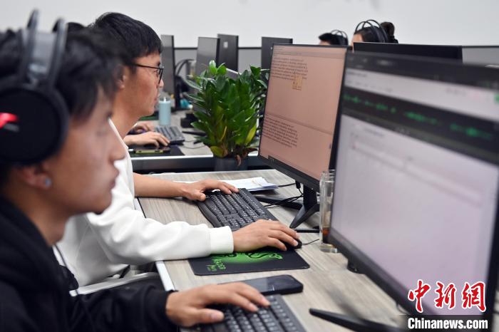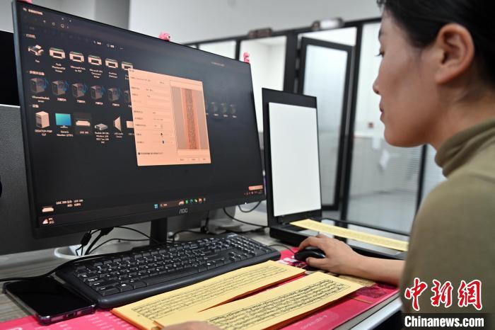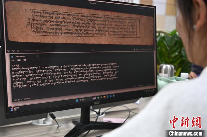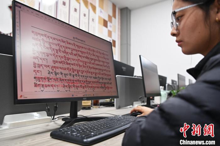 2月27日,在甘肅甘南藏族自治州碌曲縣益西達(dá)吉科技有限公司內(nèi),工作人員正在進(jìn)行藏文古籍?dāng)?shù)字化相關(guān)工作。該公司主要從事民族古籍?dāng)?shù)字化建設(shè)和古籍文獻(xiàn)數(shù)據(jù)庫建設(shè),自2019年以來,承擔(dān)西藏、四川、甘肅等省區(qū)的藏文古籍?dāng)?shù)字化項(xiàng)目。圖為工作人員用該公司研發(fā)的藏文信息處理系統(tǒng)對(duì)古籍?dāng)?shù)字化內(nèi)容進(jìn)行檢查。中新社記者 九美旦增 攝