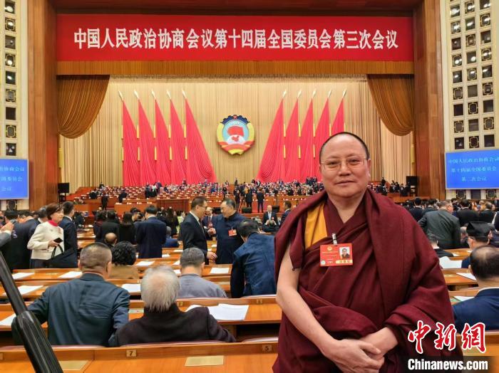 3月7日,全國政協(xié)委員達(dá)扎在北京參加中國人民政治協(xié)商會議第十四屆全國委員會第三次會議?!?受訪者供圖)
