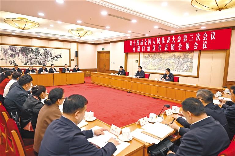 3月11日,西藏代表團(tuán)舉行全體會(huì)議,審議關(guān)于全國(guó)人大常委會(huì)工作報(bào)告、最高人民法院工作報(bào)告、最高人民檢察院工作報(bào)告的決議草案。